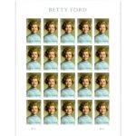 The Betty Ford stamp is being issued in panes of 20 Forever® stamps. This Forever stamp will always be equal in value to the current First-Class Mail® one-ounce price.