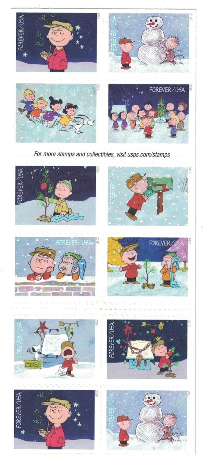 Charlie Brown Xmas Pane of 20 Forever Postage Stamps